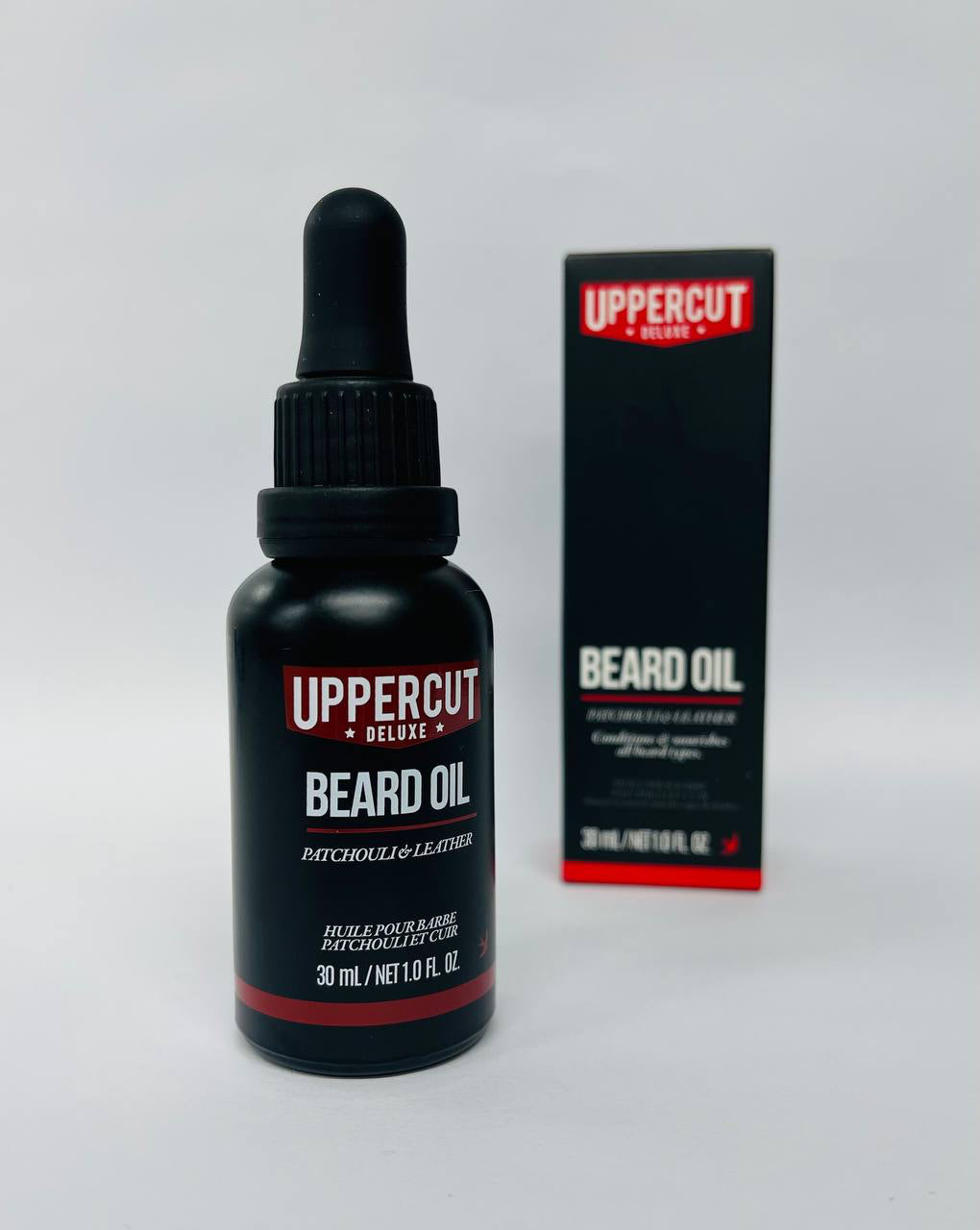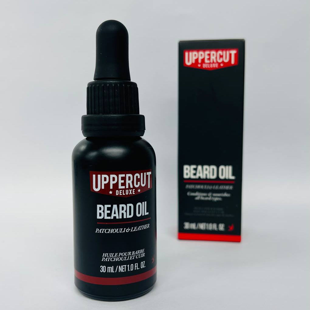 Uppercut Deluxe Beard Oil is lightweight, non-greasy with a Patchouli and Leather fragrance.